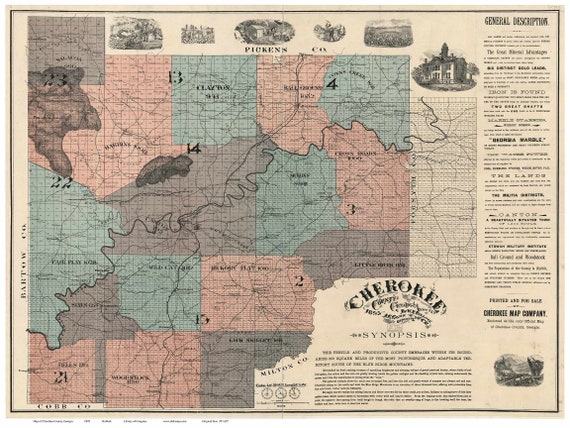 Cherokee County Old 1895 Map Georgia Wall Map With Homeowner Names