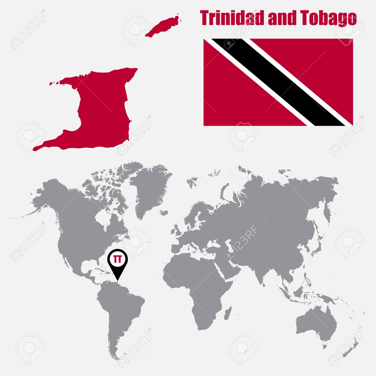 Trinidad And Tobago Map On A World Map With Flag And Map Pointer